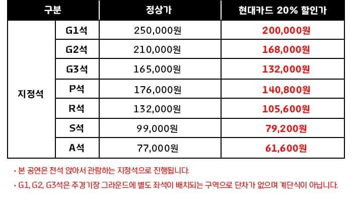 현대카드 회원 선예매 : 2023. 4.27 (목) 낮 12시 00분 ~ 밤 11시 59분