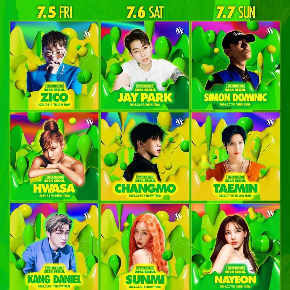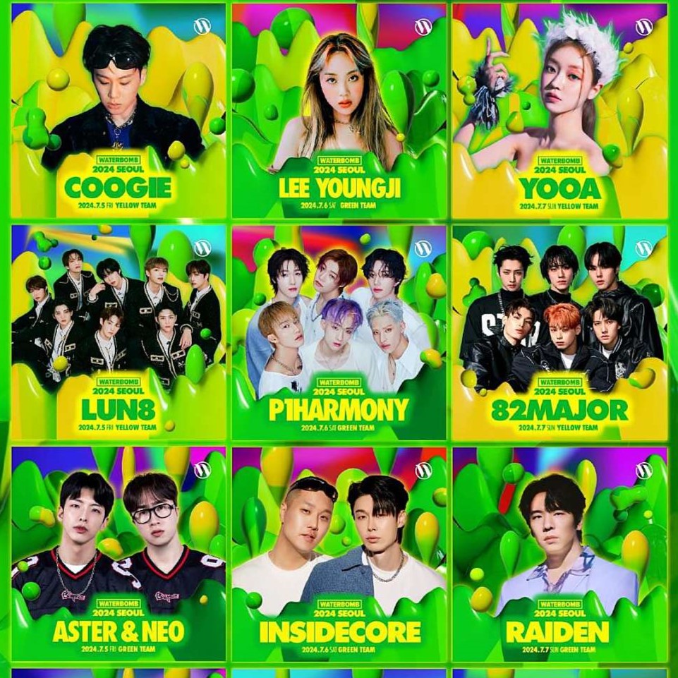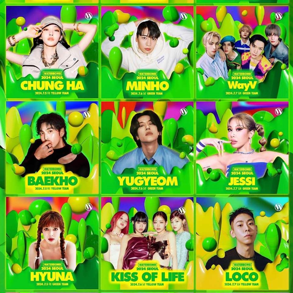 2024 워터밤 페스티벌의 라인업 입니다. 참고 하셔서 각 지역에 어떤 가수들이 함께 워터밤을 즐기는지 확인해 보시기 바랍니다. 더운 여름 시원한 축제의 현장으로 떠나보세요.